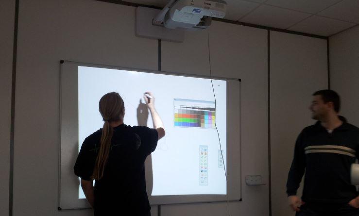 • Materi yang ditampilkan ke layar/dinding juga terganggu pencahayaan dari luar seperti cahaya yang masuk melalui jendela/pencahayaan ruangan yang terlalu gelap sehingga layar pada papan tulis terasa silau atau kurang jelas terlihat.