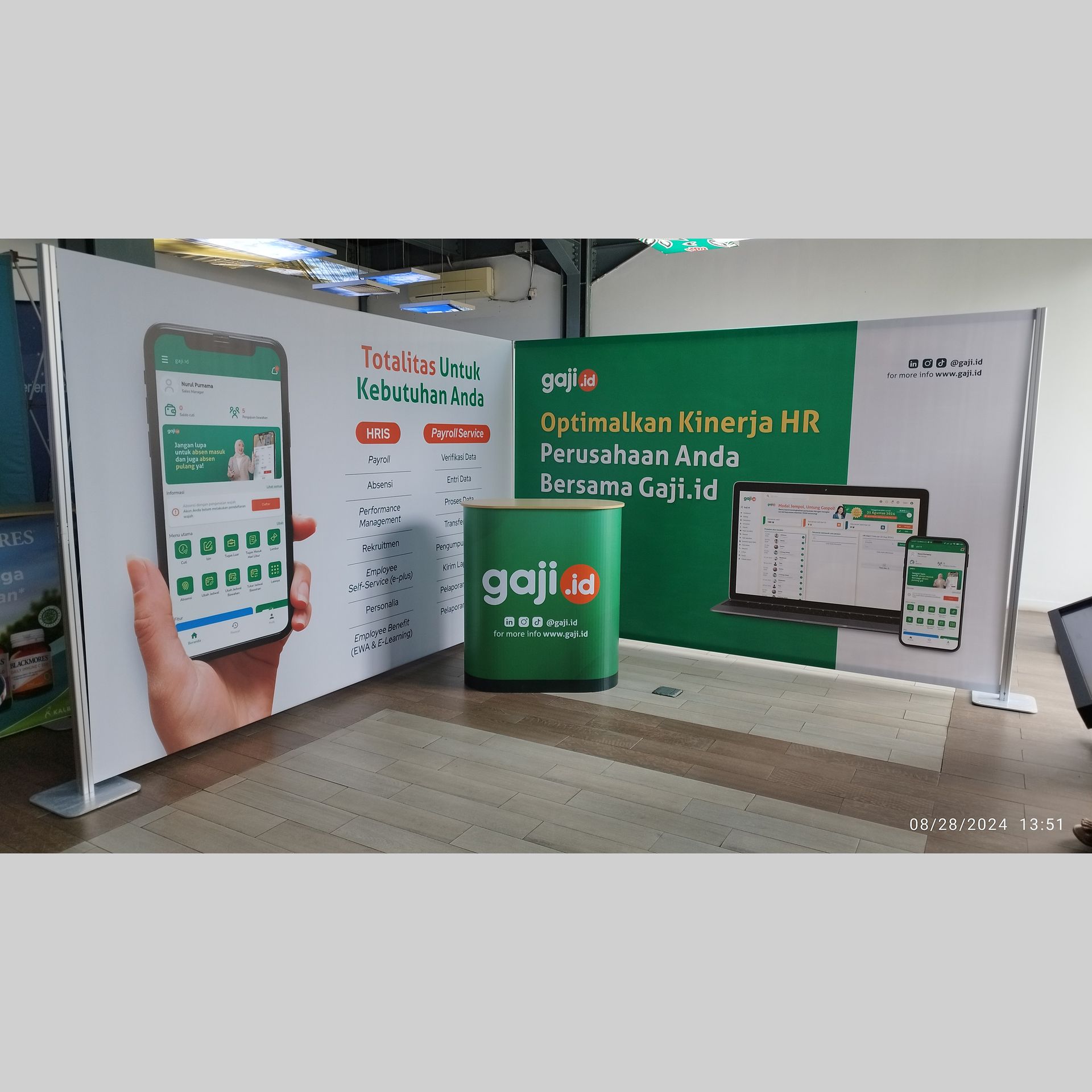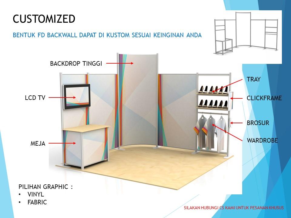 Flexi Display Backwall merupakan Local Development dari InnoGRAPH untuk jenis produk backdrop/backwall yang mempunyai ciri khas kuat, kokoh dan mudah dalam perakitan karena memakai tiang alumunium extrution yang didesain sendiri oleh team InnoGRAPH. FD Backwall mudah dikonfigurasi dalam berbagai bentuk yang dapat disesuaikan dengan kebutuhan customer.