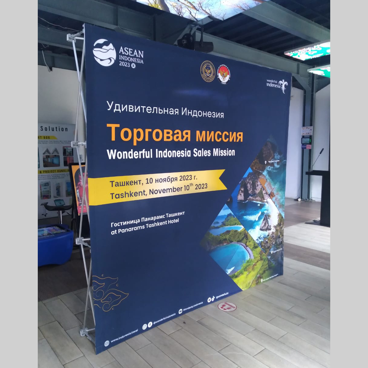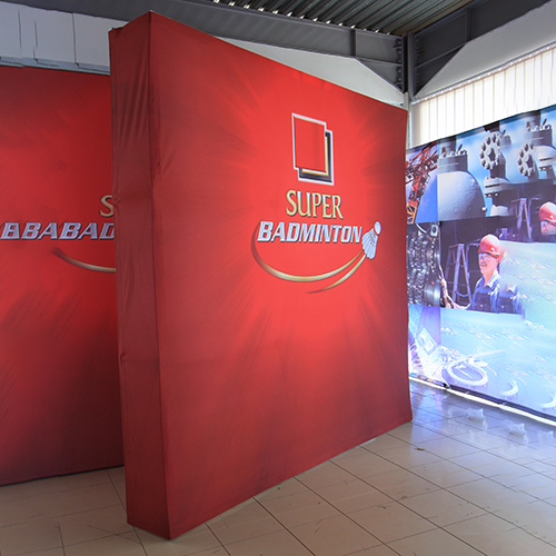 Pop Up Fabric Display merupakan perangkat portable display backwall dengan system collapsible untuk menampilkan graphic dalam ukuran besar (225 x 225 cm) yang di cetak pada media fabric textile sehingga graphic dapat ditampilkan secara penuh, rapi, dan tidak terpotong. Pop Up Fabric terbuat dari alumunium sehingga kokoh dan tak gampang jatuh selain itu Pop Up Fabric menggunakan sistem collapsible maka dapat dipasang dan dipindahkan dengan mudah tanpa perlu alat berat.