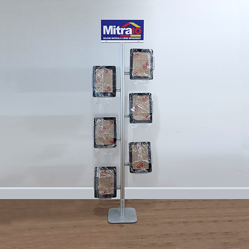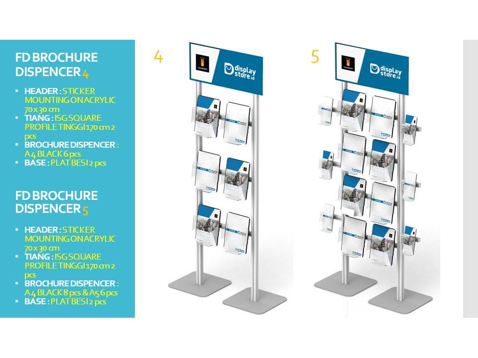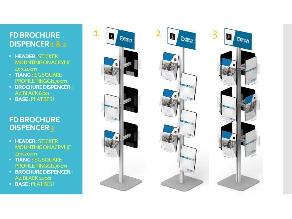Flexi Display Brochure Dispencer merupakan salah satu produk inovatif dari InnoGRAPH dengan memakai sistem Flexi Display ( Alumunium Profile Extrusi ) sehingga tiang menjadi kuat, kokoh dan tidak berkarat. dapat di bongkar pasang menggunakan Kunci L. terdapat Acrylic header untuk menempatkan Branding produk anda.