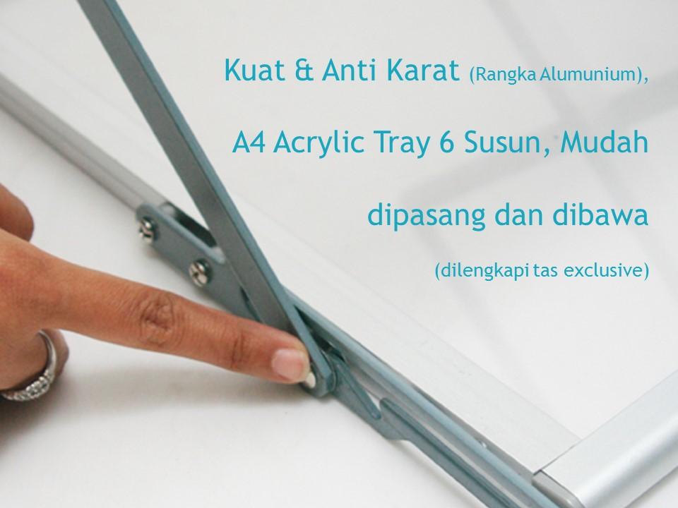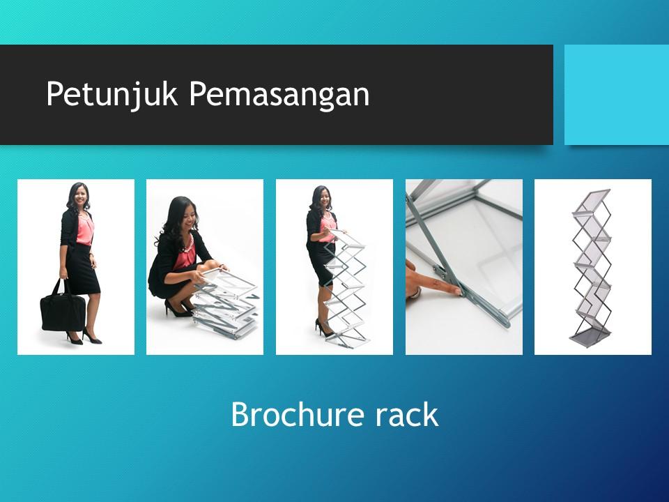 Brochure Rack merupakan rak brosur tiga tingkat berukuran A4 yang terbuat dari bahan acrylic / akrilik dan menawarkan kemudahan dalam segi pemakaian dimana rak brosur yang satu ini mudah dibawa-bawa karena portable dan dapat diatur panjang pendeknya .