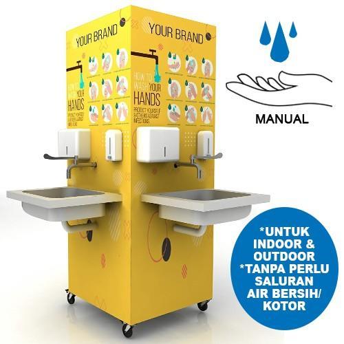Tempat cuci tangan yang dirancang khusus untuk memudahkan pengunjung membersihkan tangan di masa NEW NORMAL. Salah satu cara pengamanan terbaik untuk mencegah COVID19.
