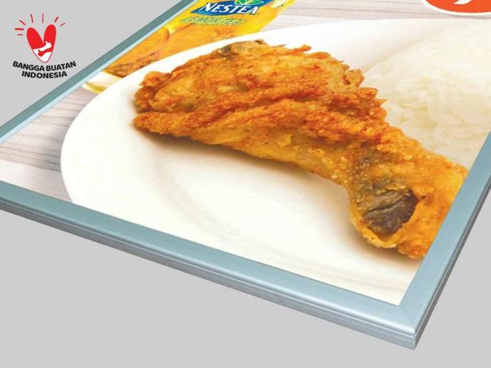Pasang poster Anda dalam sekejap. Mudah mengganti graphic/gambar/visual dan tanpa alat. Sistem sisip silicon di dalam frame lightbox.