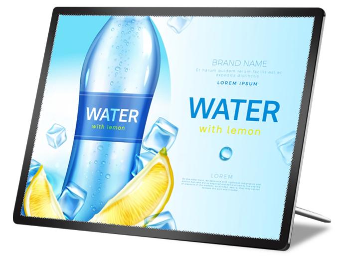 Menampilkan poster dan berbagai media cetak Anda dengan efek maksimum dengan ekstra terang dari lampu LED dan hemat energi.